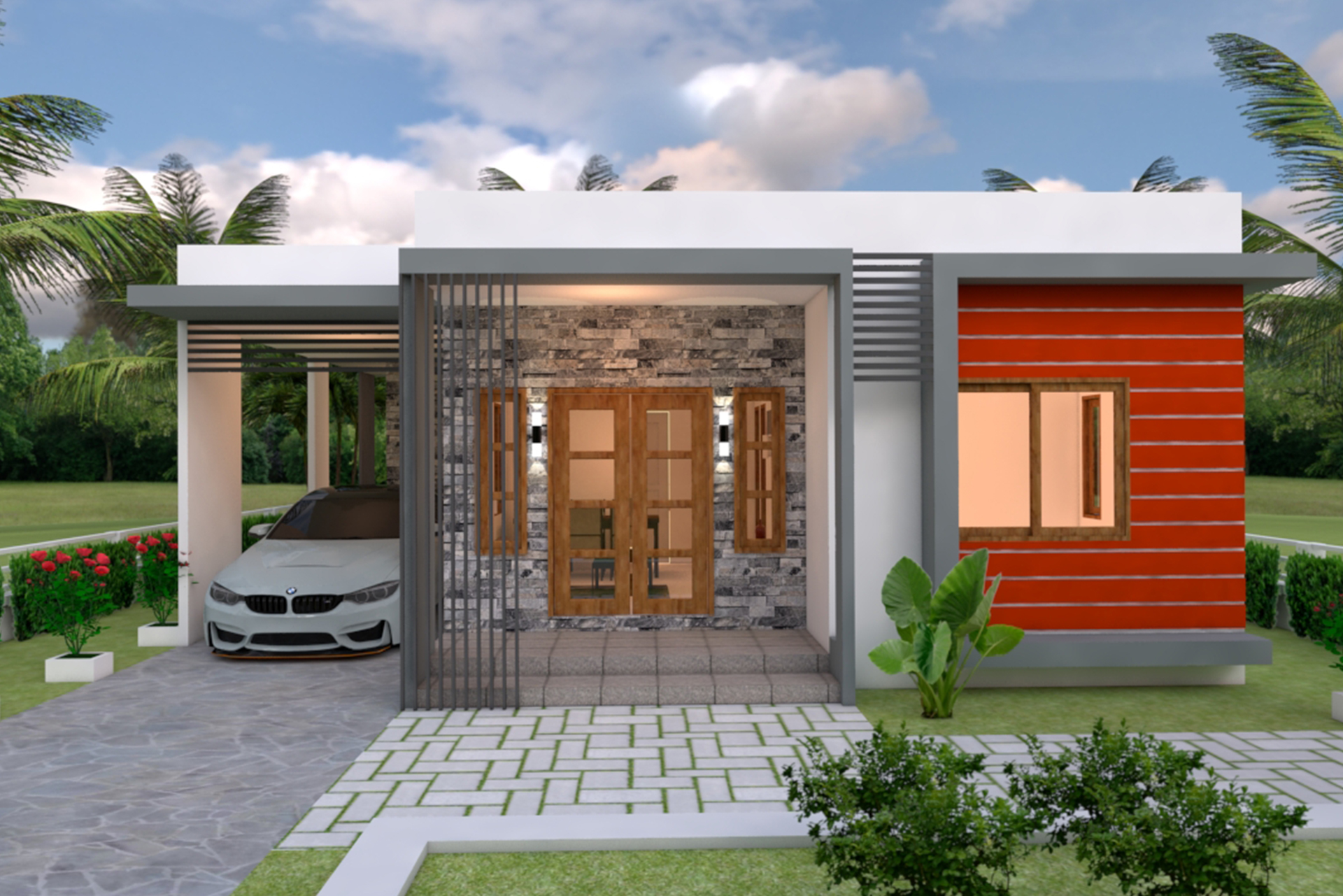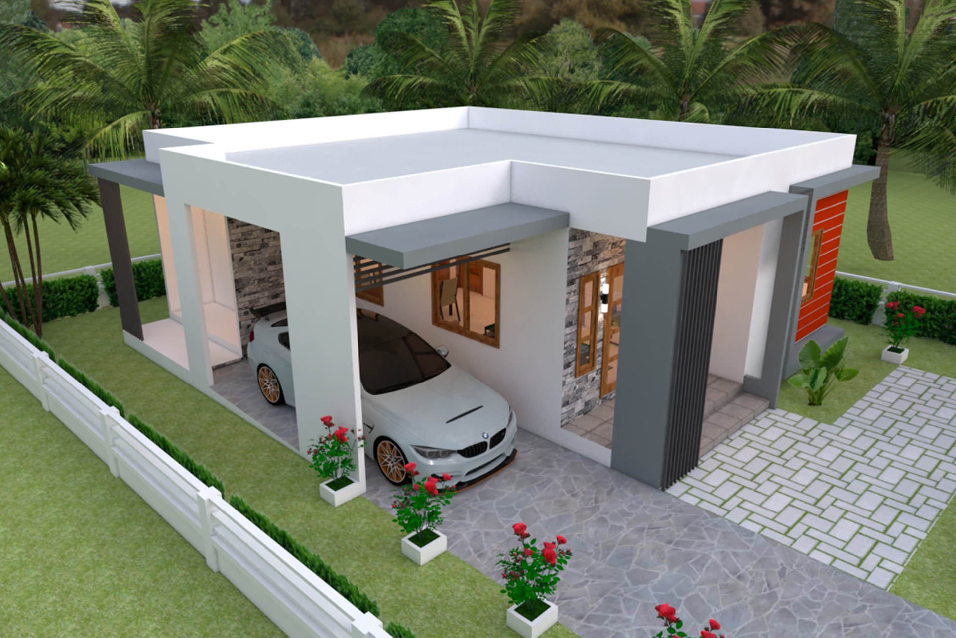 Maison Design de 2 Chambres avec Terrasse Toit/ --- Parking Voiture et Jardin -Salon, --- Salle à manger/ --- Cuisine/ --- 2 Chambres/, --- 2 salle d...e bain/ --- Salle de lavage.